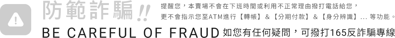 本網站亦不會以電話要求您操作ATM、變更付款方式,還請提高警覺以免受騙。如接獲不明、可疑來電,請無需理會,並來電與我們確認,興家泰關心您~